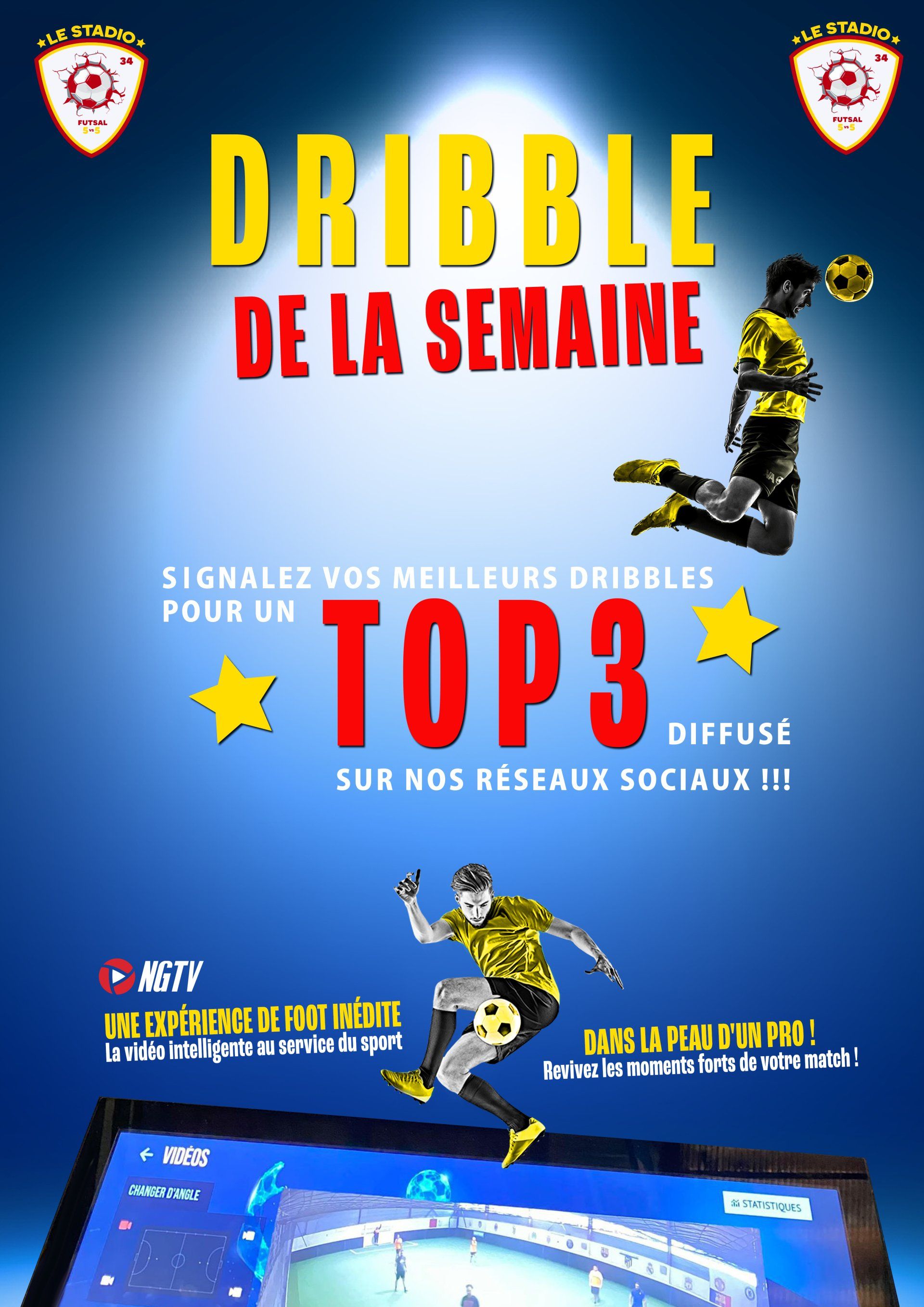 Au stadio34 Tout est penser pour vous encourager dans vos performances footbalistiques en vous offrant des petits cadeaux selon vos performances, tout est voté via nos réseaux sociaux chaque semaine : du Top dut de la semaine au meilleur dribbles de la semaine mais pas seulement, on organise des concours régulièrement su r nos réseaux pour vous faire remporter votre maillot favoris par exemple et pleins d'autres surprise, alors restez brancher.